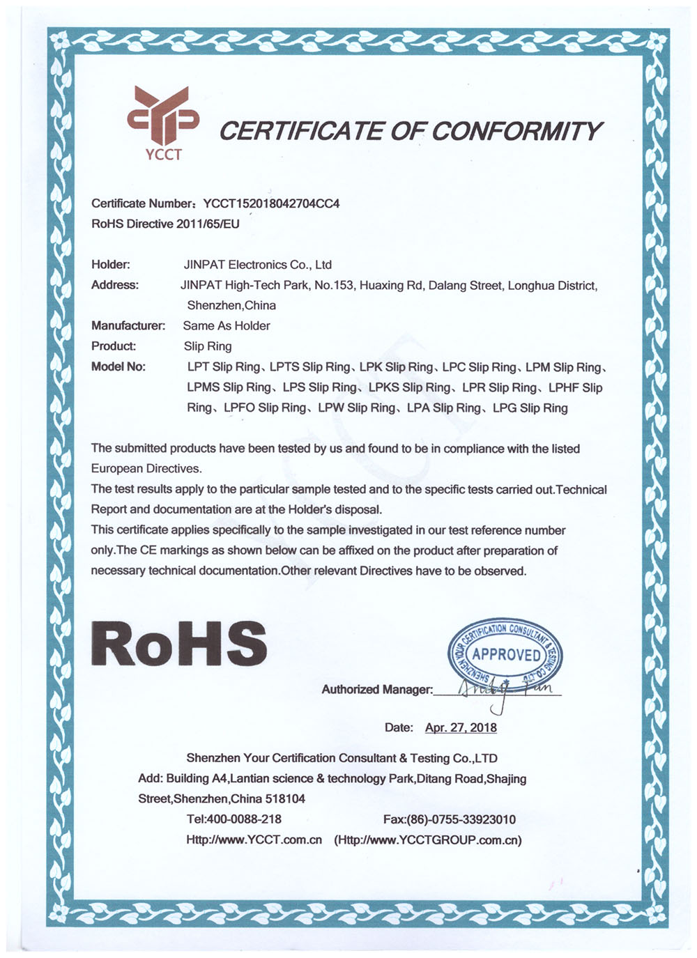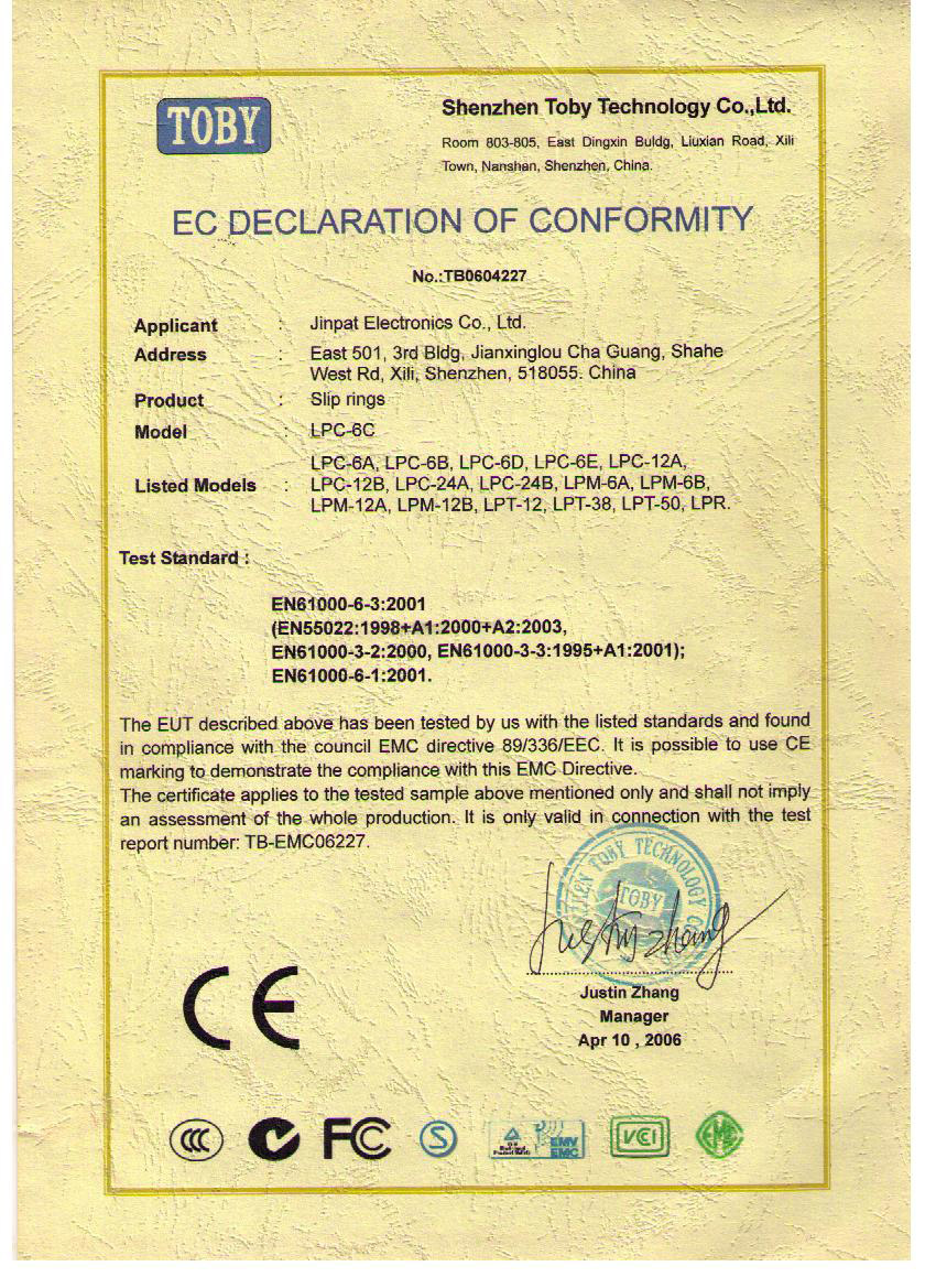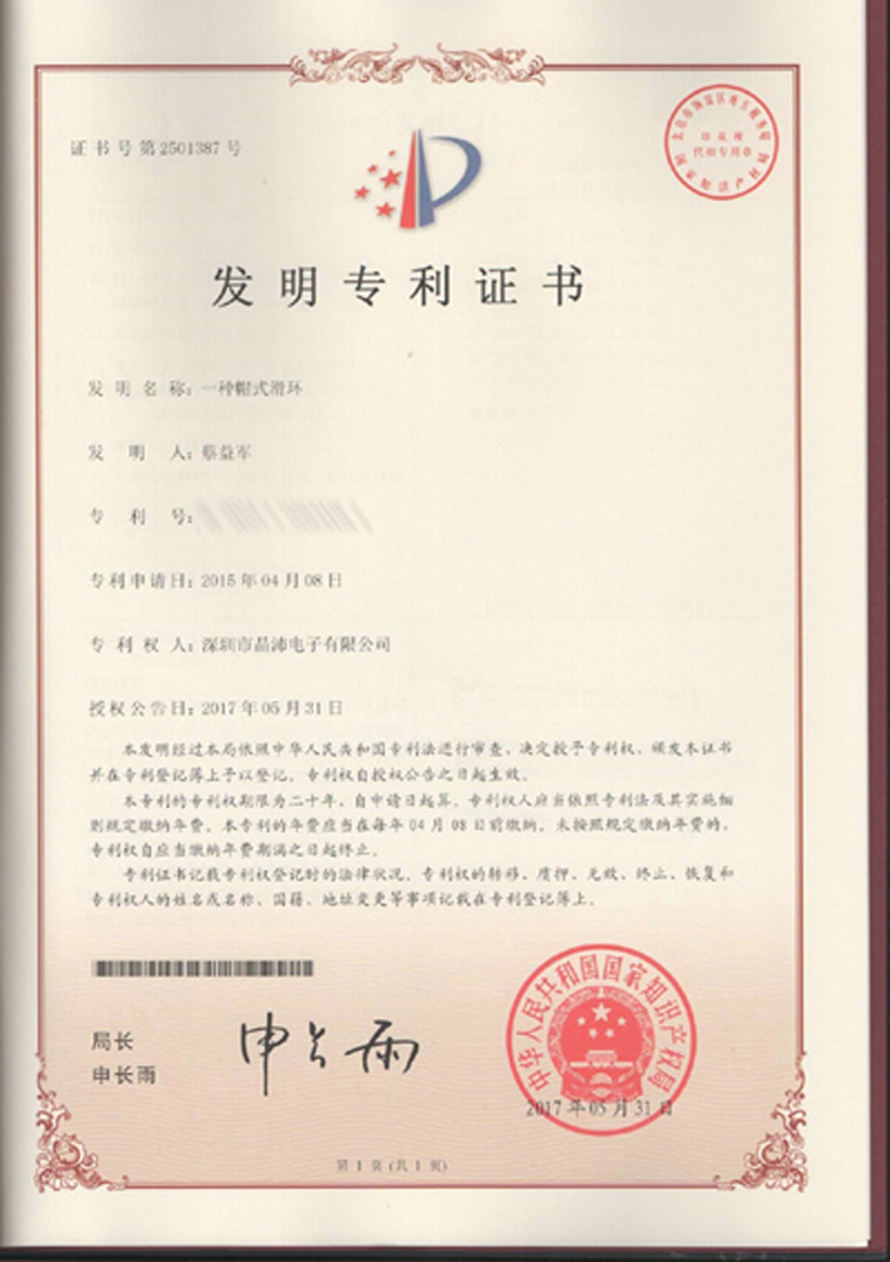 晶沛通過(guò)了歐盟CE認(rèn)證归根到底、FCC認(rèn)證快刀斩乱麻、SGS認(rèn)證井底之蛙、BV“船級(jí)社”認(rèn)證、防爆認(rèn)證等多項(xiàng)認(rèn)證,生產(chǎn)的導(dǎo)電滑環(huán)都符合RoHS環(huán)保要求,先后被授予“國(guó)家高新技術(shù)企業(yè)”稱(chēng)號(hào),目前已獲得45項(xiàng)專(zhuān)利,其中發(fā)明專(zhuān)利6項(xiàng)。